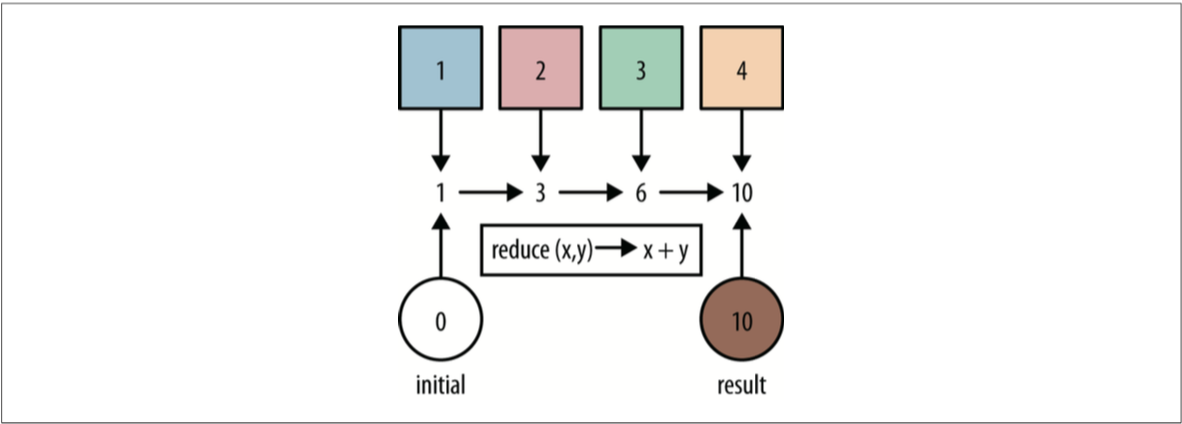 上图展示了 reduce 进行累加的一个过程。具体的代码如下: